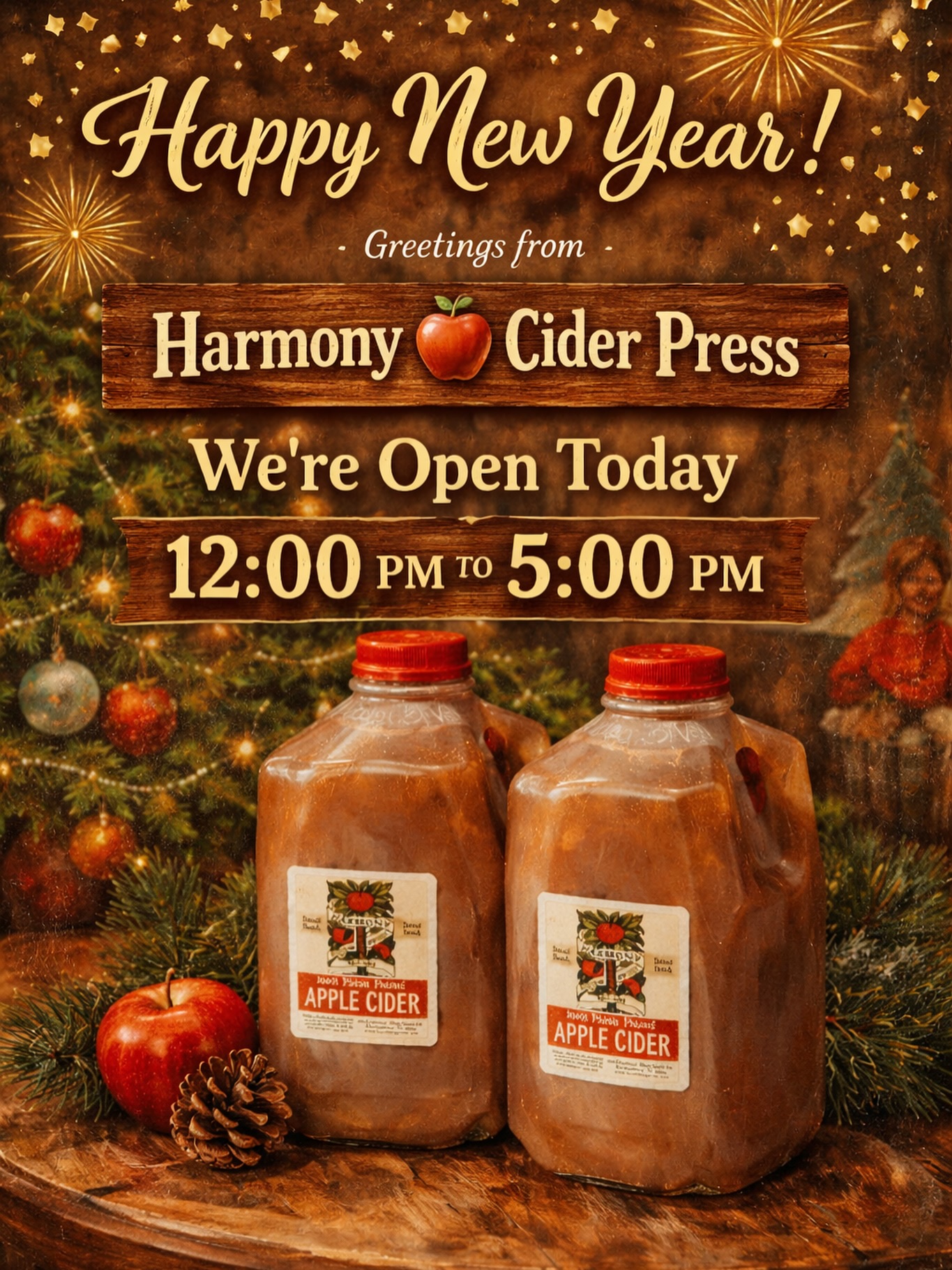 Harmony Cider Press has been part of the local community since 1924 when it was started by the Smith Brothers. In 1952, it was purchased by Ellis Apgar and has been run by the Apgar family until 2025.